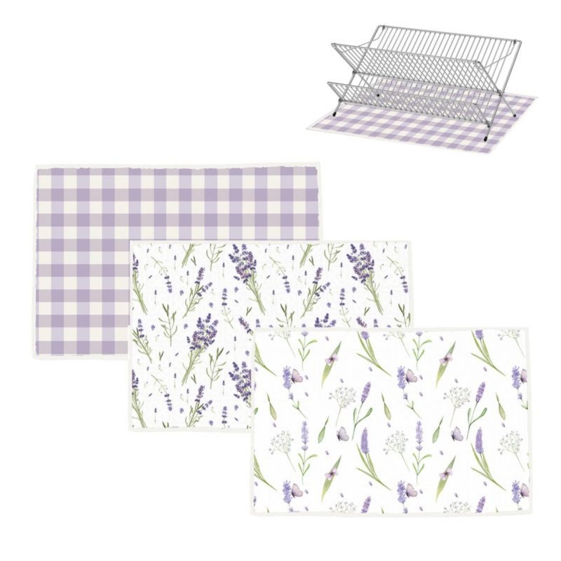 Alfombrilla Escurridor Platos 45x30cm x3 Modelos Poliester Lavanda Secado Rápido Antideslizante Cocina